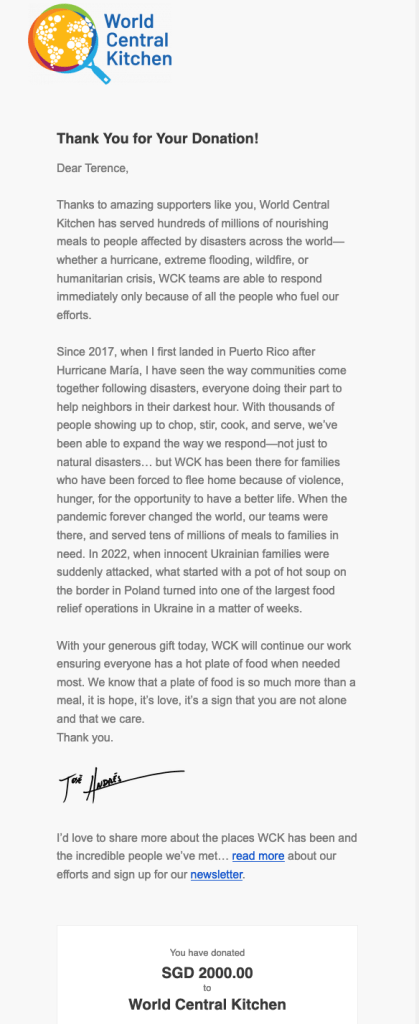 A big thank you to all of your support for this event, revenue from the 16GEF has been donated to World Central Kitchen.
